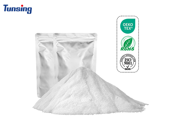 接着特性:TPUホットメルト接着剤パウダーは、DTF印刷における転写プロセス中に、印刷されたデザインと基材との間の強力な結合を作成するように設計されています。転写されたデザインの優れた接着性と耐久性を保証します。